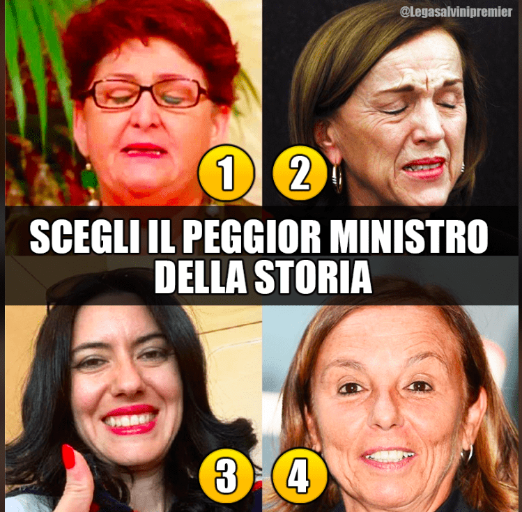 La ministra dell’istruzione Lucia Azzolina finisce nel sondaggio sessista lanciato sulla pagina Facebook della Lega, insieme alle colleghe Teresa Bellanova, ministra delle politiche agricole, alla ministra dell’interno Luciana Lamorgese e ad Elsa Fornero, già ministra del lavoro e delle politiche sociali. Il sessismo del sondaggio, che prende di mira e mette alla gogna quattro donne, lasciando intendere che il peggio, politicamente parlando, è tutto al femminile, si commenta da sé.