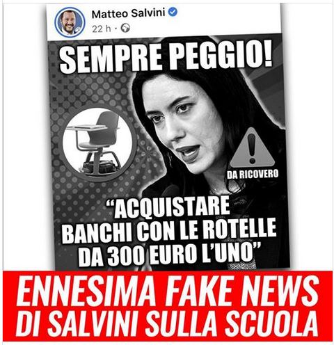 A dirlo è la Ministra Azzolina, con un post pubblicato su Facebook, con il quale risponde a quelle che definisce fake news sulla scuola del leader della Lega, Matteo Salvini.