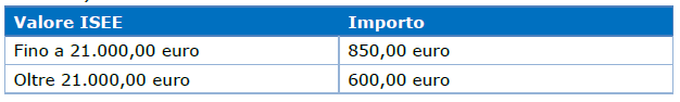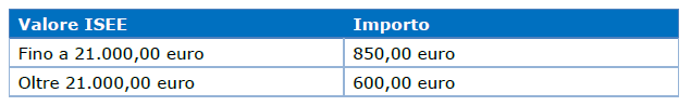 L’importo dell’assegno di frequenza è calcolato in base al valore ISEE del nucleo familiare cui appartiene il beneficiario, secondo la seguente tabella: