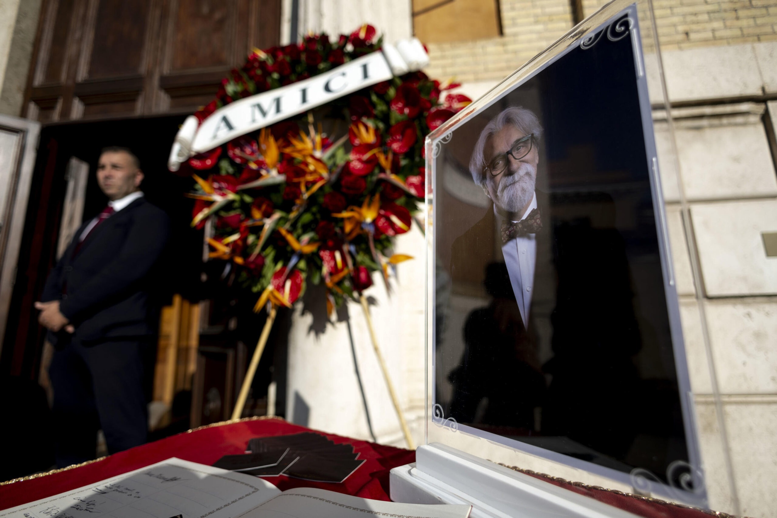 Le esequie si sono svolte in forma privata nella Chiesa dei Santi Angeli Custodi di Montesacro, il quartiere romano dove viveva da anni. All’esterno, sul Municipio, uno striscione recitava “Ciao Maestro”, saluto affettuoso di una città grata. Due corone portavano le firme di Maria De Filippi e Amici, il talent che lo aveva reso un volto familiare a milioni di italiani. Tra i presenti molti amici e colleghi: Valerio Scanu, Fiorella Mannoia, Lorella Cuccarini, Rudy Zerbi, Rossella Brescia, Giuliano Peparini.