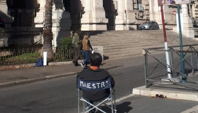 Di fatto non accade nulla; a fine ottobre parte per Roma e, munito di un seggiolino, trascorre tre settimane davanti all’ingresso del Ministero sperando di essere ricevuto dal Ministro in persona.