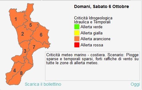 A ciò si aggiunge lo scenario arancione che appare sul sito della Protezione Civile che riguarda la fase previsionale per sabato 6 ottobre. Per verificare se è stata disposta per ogni comune la chiusura è opportuno collegarsi all’albo pretorio online delle amministrazioni comunali di proprio interesse.