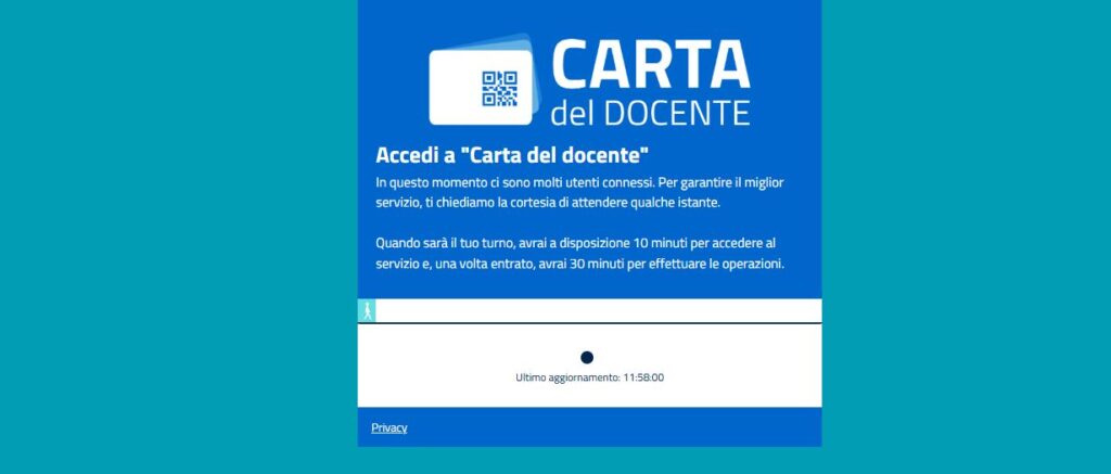 Nella schermata visibile entrando nel portale, viene comunicato che ci sono troppi utenti connessi: per questo si dovranno attendere alcuni minuti prima di poter accedere e fare qualunque operazione. Ma cosa acquistare con il residuo della carta docente 2024/2025?