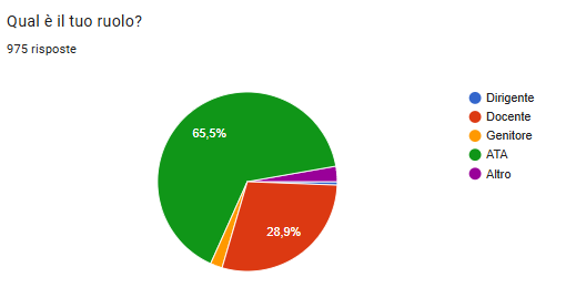 La rilevazione on line ha coinvolto in modo diretto 975 persone: hanno partecipato 639 ATA, 282 docenti, 21 genitori e 6 dirigenti scolastici.