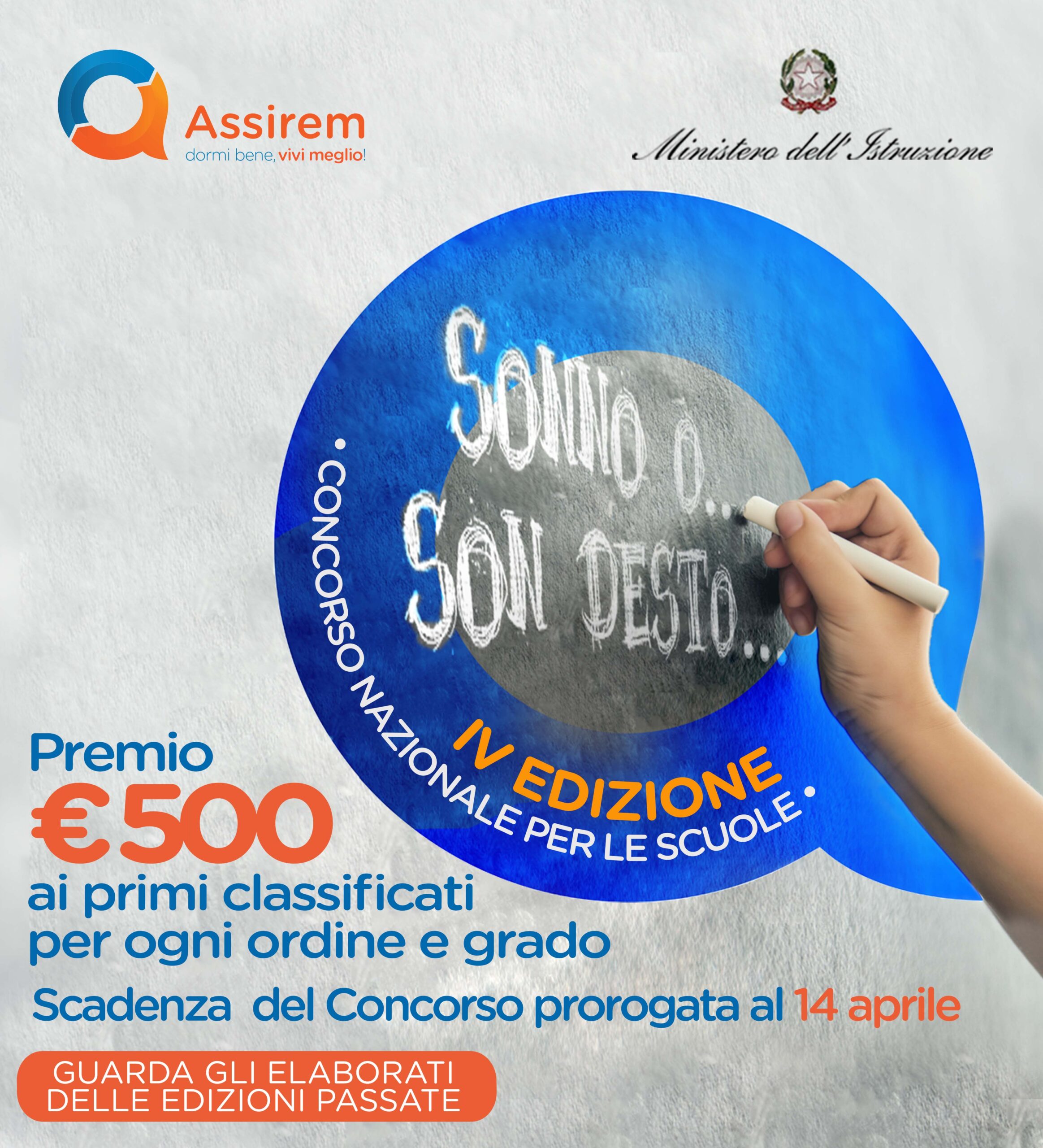 Il Concorso “Sonno o… son desto?” si colloca nel quadro della campagna annuale di sensibilizzazione dei giovani condotta da Assirem con l’obiettivo di promuovere corretti stili di vita orientati alla prevenzione dei disturbi e delle principali patologie correlate a un cattivo sonno.