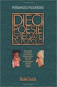 Di diverso tenore è invece il secondo libro, sempre pubblicato dello stesso editore: Dieci poesie spiegate al popolo. Che poi, questo popolo, sono i ragazzi delle secondarie, di primo e secondo grado, i quali, in omaggio alla felice intuizione di Filicheddu, pongono delle domande, in una sorta di “interviste impossibili”, ai vari autori che l’autore tratta: “Che ci dici di Beatrice? Non eri forse sposato, maialone?”, è per esempio una della tante interrogazioni che i ragazzi pongono al sommo Poeta. Non riportiamo la risposta, ma a Leopardi si chiede: “Quante delle tue disgrazie sono attribuibili ai tuoi genitori?”, che è interrogativo più che attuale di fronte ai casi di bullismo.