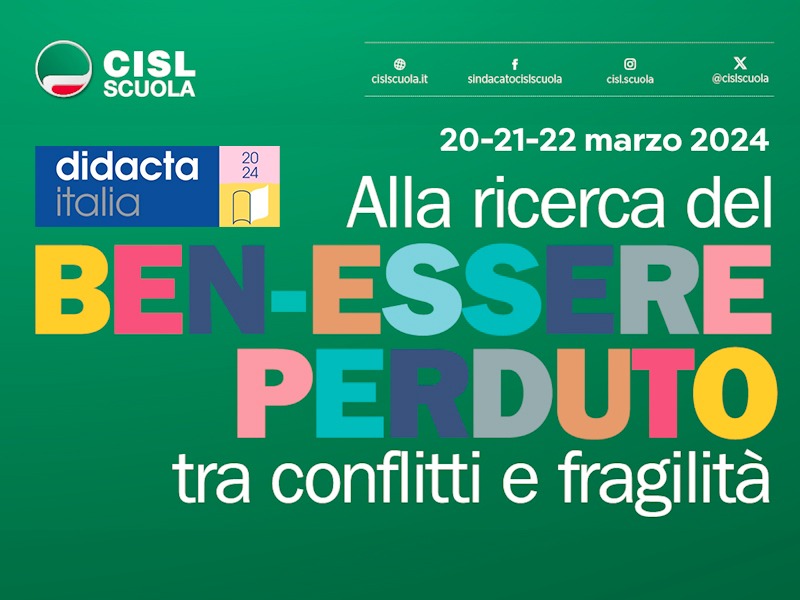 «Con la partecipazione a Didacta Italia 2024– spiega la segretaria generale Ivana Barbacci –la CISL Scuola si propone di richiamare l’attenzione sulla necessità, sempre più avvertita, di promuovere una condizione di ben-essere in tutte le scuole, attraversate da un disagio palpabile, avvertito dal personale e vissuto dagli stessi studenti; un ben-essere che rappresenta una premessa indispensabile per il migliore esito dei percorsi educativi e di istruzione».