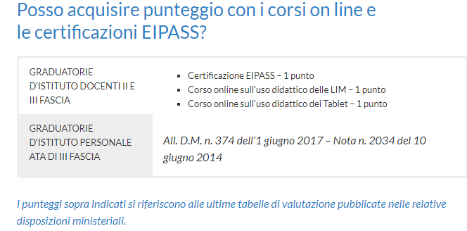 Posso acquisire punteggio con i corsi on line e le certificazioni EIPASS!
