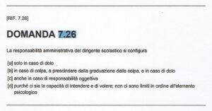 Il primo sarebbe presente negli item di risposta della domanda 7.26, che è la seguente: “La responsabilità amministrativa del dirigente scolastico si configura”.