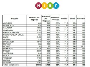 Questa volta i numeri riguardano gli ammessi alla fase successiva (scritto e orale) suddivisi per regione.