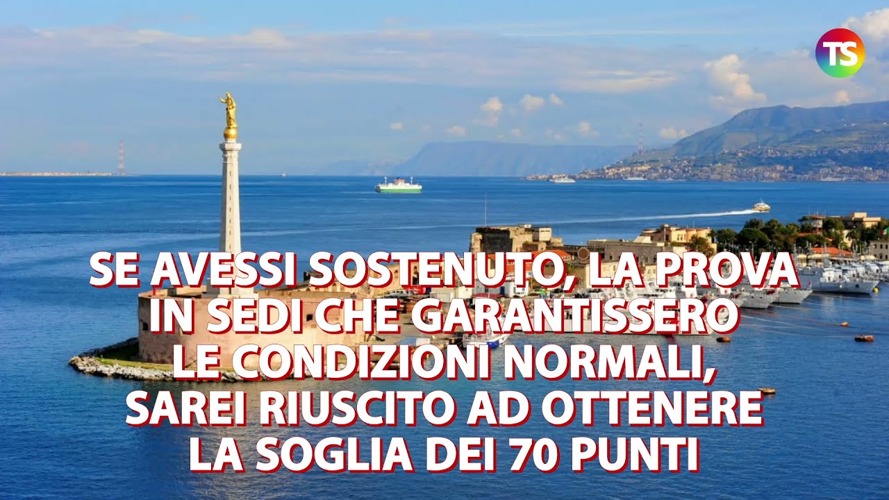 E spiega: “Per poche domande non sono passato: ho superato la soglia dei 60 punti su 100 (che ovunque rappresenta la sufficienza) ma per 3 domande non ho raggiunto i 70 punti. Sono sicuro che se avessi sostenuto, come tanti altri, la prova in sedi normali (come Messina, Catania, Acireale e così via) che garantissero le condizioni normali per eseguire tale prova, sarei riuscito ad ottenere la soglia dei 70 punti. Sto evidenziando un fatto oggettivo di impedimento alla normale esecuzione della prova“.