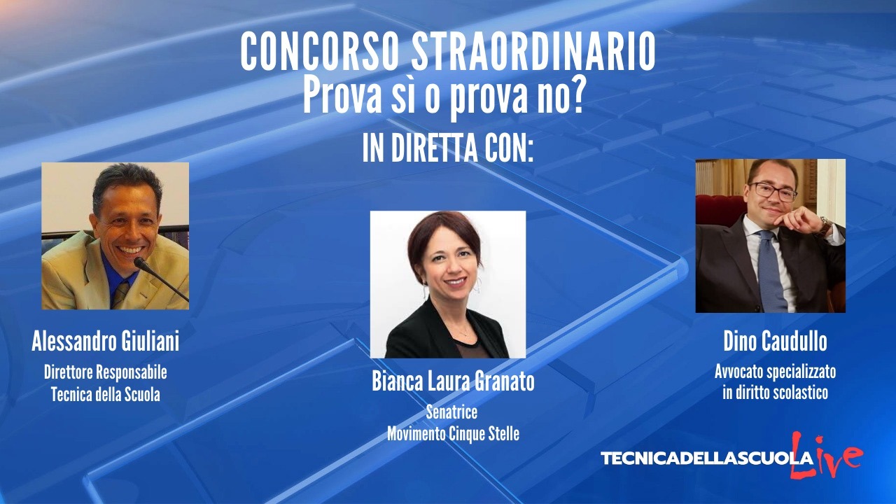 Nella prima parte, condotta dal giornalista Andrea Carlino, spazio all’intervista alla senatrice del Movimento Cinque Stelle, Bianca Laura Granato che risponderà alle domande del direttore della Tecnica della Scuola, Alessandro Giuliani. Nella seconda parte, invece, condotta dal giornalista Fabrizio De Angelis, ci sarà modo per rispondere ai quesiti più interessanti in merito al concorso straordinario. Come, ormai di consueto, sarà l’avvocato Dino Caudullo, esperto di diritto scolastico, a rispondere alle domande poste dai nostri lettori.