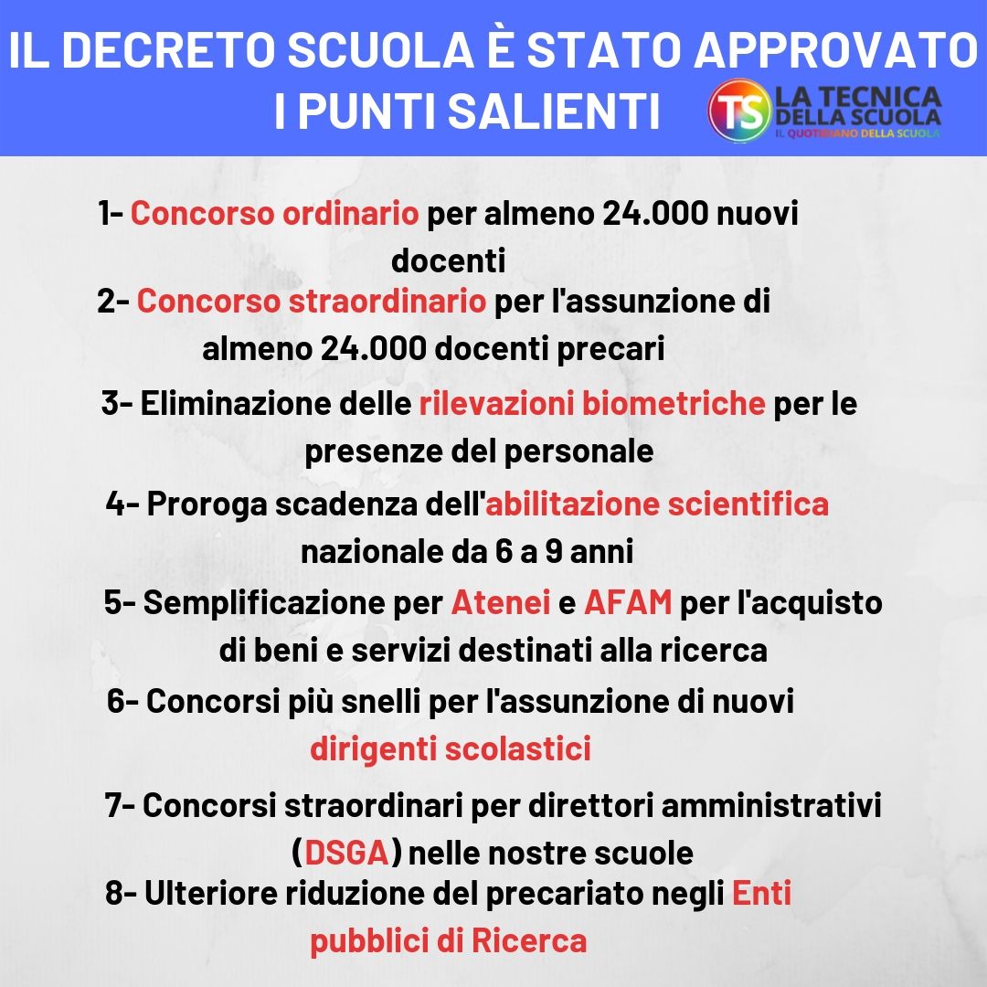 Due concorsi per docenti precari e neolaureati e uno per i direttori amministrativi. Il decreto scuola, approvato ieri in Consiglio dei ministri, punta sulla stabilizzazione dei supplenti e sul reclutamento di nuovi insegnanti.