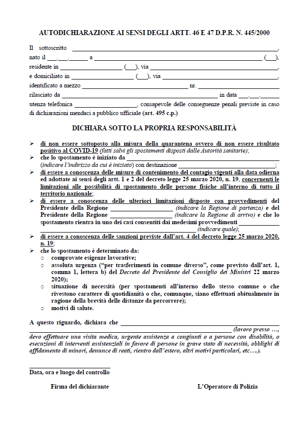 Sono passati appena tre giorni dall’ultimo modulo di autocertificazione, ma con la pubblicazione sulla Gazzetta Ufficiale, la scorsa notte, di altre disposizioni, il testo per certificare gli spostamenti è stato nuovamente modificato.