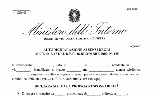 Chi si sposta per esigenze motivate potrà presentare ai controlli un’autocertificazione. Il modulo è stato messo a disposizione dal dipartimento di Pubblica sicurezza. Resta comunque il divieto assoluto a spostarsi, senza eccezioni, per le persone sottoposte a quarantena o positive al coronavirus.