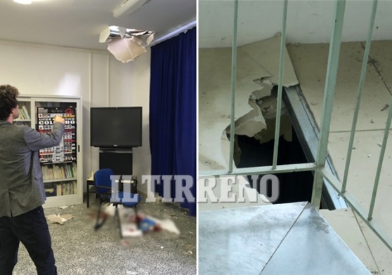Secondo quanto riporta il Tirreno, alla prima ora di lezioni, il solaio all’esterno di un laboratorio d’informatica è crollato improvvisamente e un docente è caduto da un’altezza di circa 3 metri, riportando ferite alla schiena: è stato soccorso e portato all’ospedale in codice giallo.