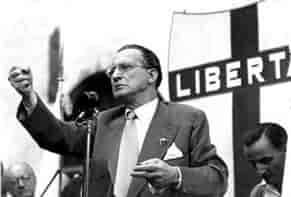 Per parte nostra pubblichiamo un ritaglio di giornale del 1952, allorché De Gasperi inaugura la Fiera di Milano, per sottolineare che in settanta anni il dibattito politico è ancora fermo dover lui l’ha lasciato.
