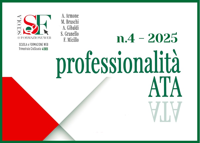 È in linea dal 18 dicembre il quarto e ultimo numero del 2025 di Scuola e Formazione web, il trimestrale della CISL Scuola. Questo numero è dedicato al tema della professionalità del personale ATA, fondamentale, come afferma la segretaria generale Ivana Barbacci nel suo editoriale, nel “garantire nel modo più efficace la fruizione di un diritto fondamentale, quello all’istruzione”. È nella visione della scuola come una comunità educante e nell’idea di una rappresentanza unitaria di tutte le professioni operanti nel settore che il ruolo del personale ATA trova un pieno riconoscimento. Ed è nell’impegno verso questo settore del mondo del lavoro scolastico, che trova riscontro nei rinnovi contrattuali 2019/21 e 2022/24, in attesa che si apra il negoziato per il triennio 2025/27, che emergono la consapevolezza del suo valore e l’attenzione e la cura di cui la CISL Scuola si fa carico ogni giorno.
