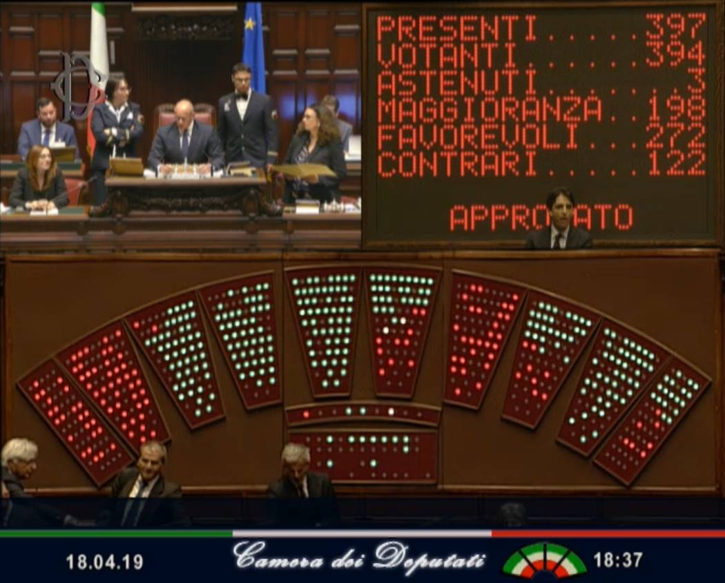 Con 272 voti favorevoli e 122 contrari, ieri la Camera ha approvato la risoluzione di maggioranza sul Documento di Economia e Finanza 2019, il principale strumento di programmazione della politica economica del Governo.