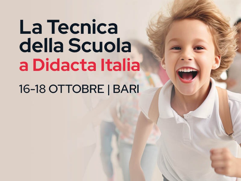 La Tecnica della Scuola, attiva nel campo dell’informazione scolastica da oltre 75 anni, dopo il successo di Fiera Didacta Italia, sarà presente alla Fiera Didacta Italia – Edizione Puglia.