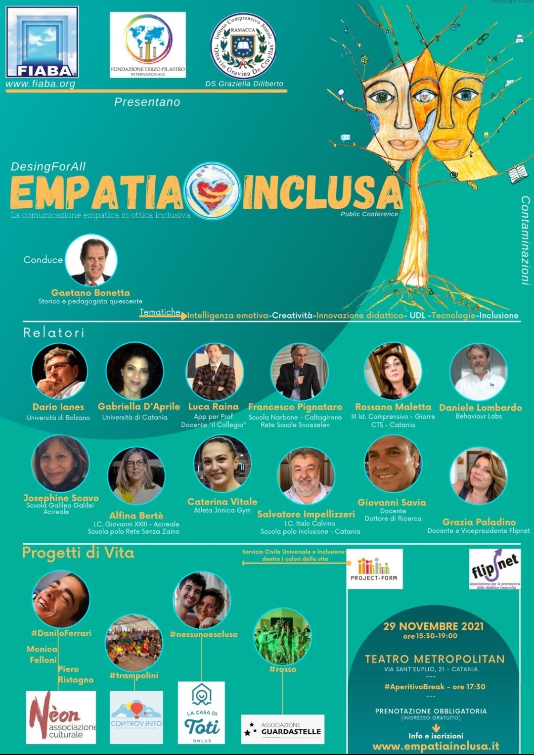 “La comunicazione empatica in ottica inclusiva”: è questo il nucleo portante da cui prende avvio il Progetto Empatia Inclusa che si aprirà con il Convegno gratuito del 29 novembre 2021 dalle 15:30 alle 19:00 presso il Teatro Metropolitan di Catania.