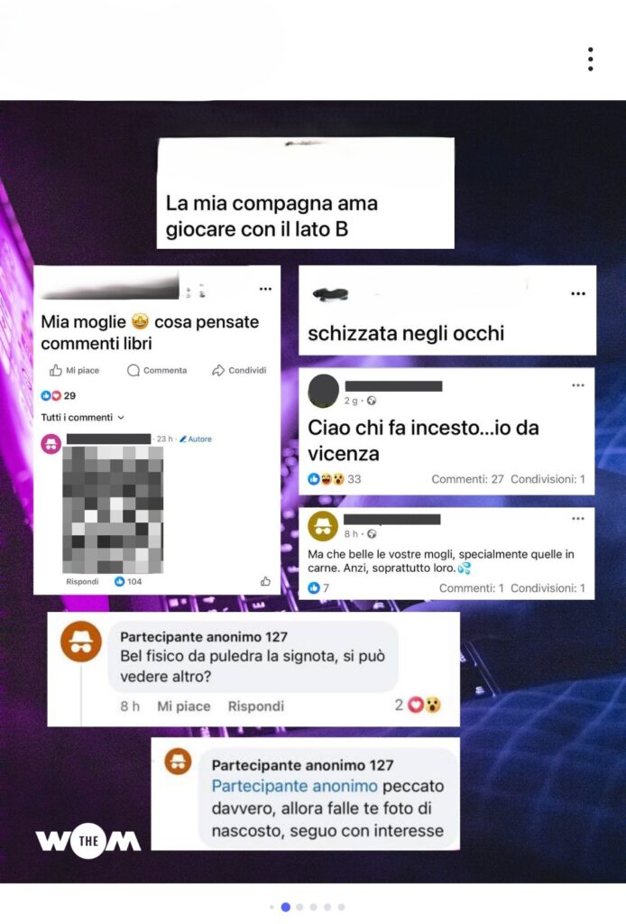 Un gruppo pubblico su Facebook – che non nominiamo, ma che ormai è tristemente noto – raccoglie oltre 31.000 iscritti. Al suo interno, uomini (e anche alcune donne) postano fotografie intime delle cosiddette “mogli” – molte delle quali inconsapevoli di essere ritratte o che non hanno dato alcun consenso. Molte immagini appaiono scattate di nascosto in spiaggia o in casa, altre sono zoomate, ritagliate o pixelate: corpi femminili trasformati in oggetti digitali da consultare, commentare, perfino desiderare in modo cinico. Nonostante migliaia di segnalazioni inviate a Meta e alla Polizia Postale, il gruppo continua ad esistere, attivo e pubblico, confermando una violenza sessuale di massa che sfocia nella pornografia non consensuale.