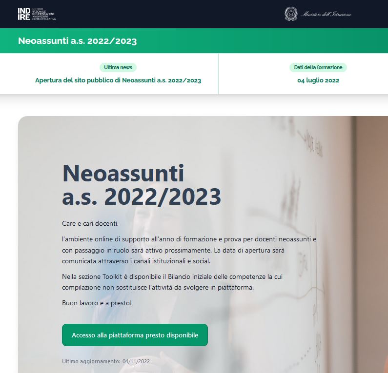 La piattaforma per il periodo di formazione e prova dei docenti neoassunti nell’a.s. 2022/23 è ufficialmente aperto.