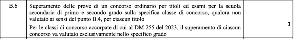 Per quanto riguarda invece la prima fascia GPS, ovvero per l’insegnamento della classe di concorso A018, il superamento delle prove di un concorso ordinario che sia diverso dalla classe di concorso specifica, non può essere dichiarato. Infatti il punto B.6 della tabella A/3 della prima fascia specifica quanto segue: