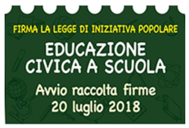 Il 20 luglio 2018 si aprirà in tutta Italia la campagna di raccolta firme per introdurre un’ora alla settimana di Educazione alla Cittadinanza come disciplina autonoma con propria valutazione, nei curricula e nei piani di studio di ogni ordine e grado.