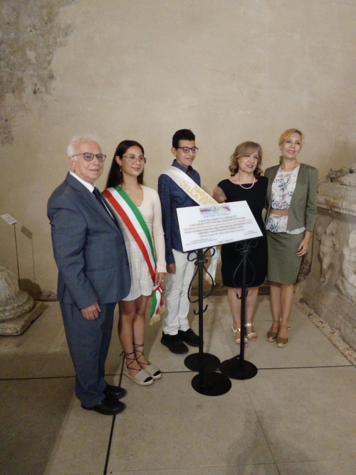 Nel giorno dell’anniversario del convegno è stata inaugurata una targa commemorativa in una sala del Museo Civico del Castello Ursino che recita: “Hanno dato origine all’introduzione dell’insegnamento dell’EDUCAZIONE CIVICA negli Istituti e Scuole d’Istruzione Secondaria e Artistica