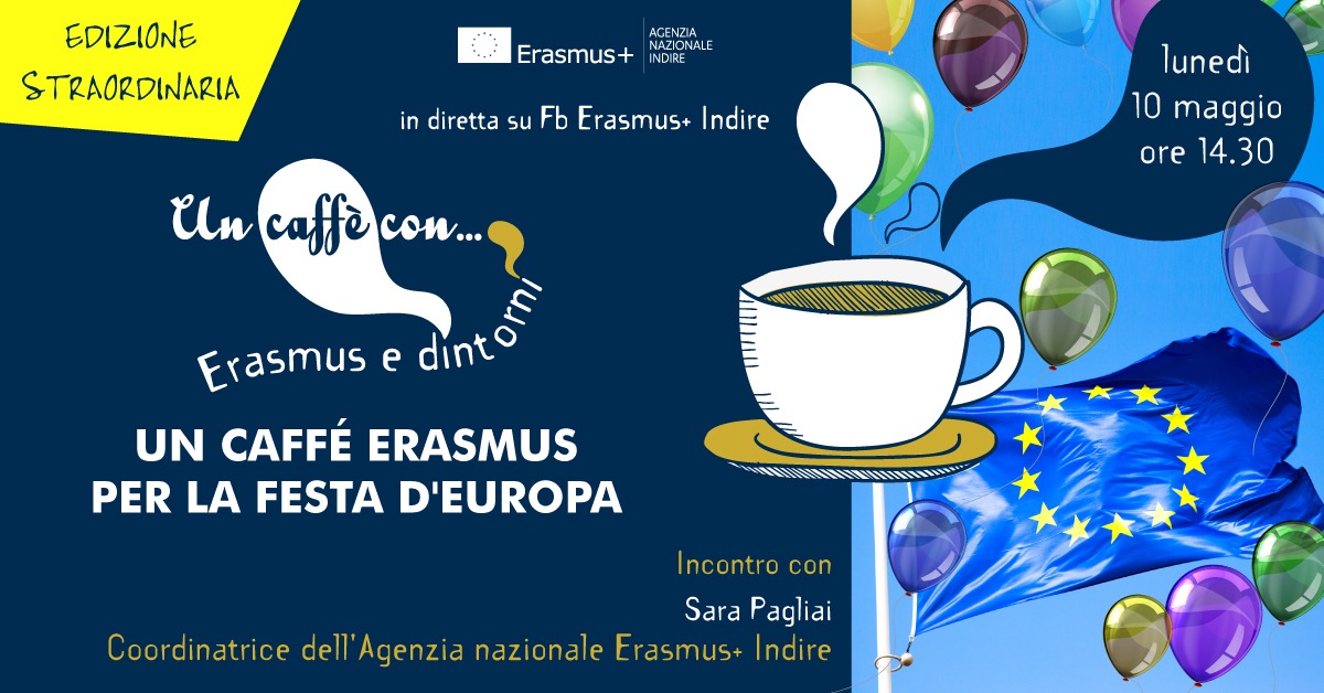 Per celebrare la Festa dell’Europa l’Agenzia Erasmus+ Indire organizza lunedì 10 maggio alle 14:30 un’edizione straordinaria del “Caffè con…”, in diretta online sul canale Facebook dell’Agenzia.