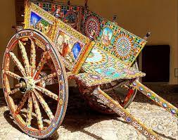 E allora qualcuno adottava immagini sacre, altri fatti narrati dai cantastorie, altri personaggi del mito locale, benchè la maggior parte preferisse le storie dei reali di Francia, quelli di Rizzieri e di Orlando e Rinaldo, compreso re Carlo e pure qualche scena tratta dai “Mafiosi della vicaria”, un drammone dell’Ottocento ormai noto a pochissimi. Un modo insomma per ornarlo e renderlo esteticamente migliore e più appariscente rispetto a quello degli altri, cosicché diventa pure, il carretto, da mezzo da lavoro, a un insieme di pannelli variopinti vaganti, “trittici” disegnati sulle sponde, talvolta pure da gustare e leggere con impegno: una specie di arte in movimento, itinerante, insomma sulle orme delle due grandi ruote.