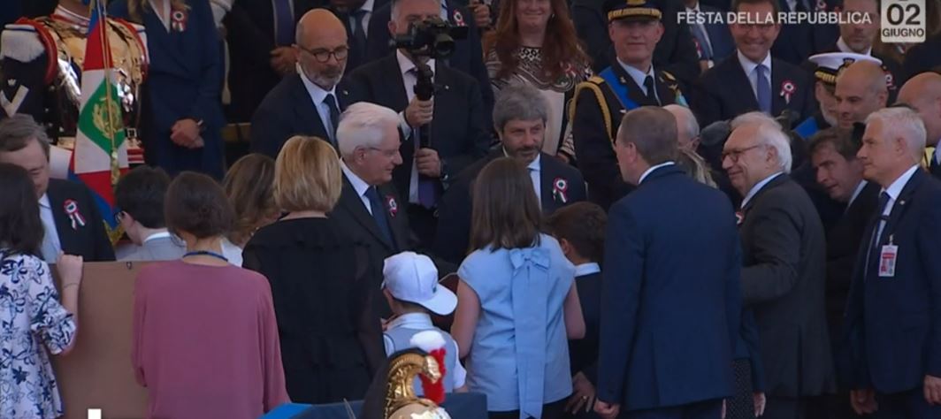Il 2 giugno in via dei Fori Imperiali a Roma, al termine della tradizionale rassegna militare, introdotta dalla rappresentanza dei Sindaci d’Italia e impreziosita dal passaggio in volo delle sempre emozionanti Frecce Tricolori, gli alunni Maria Francesca Lorusso e Nicolas Nathan Bavaro della classe 5^B con la Dirigente Scolastica, prof.ssa Angela Tannoia, sono stati ricevuti dal Presidente della Repubblica, Sergio Mattarella, in tribuna d’onore col Presidente del Consiglio, Mario Draghi, il Ministro dell’Istruzione Patrizio Bianchi e tutti gli autorevoli membri del Governo in carica.
