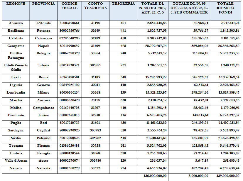 La distribuzione delle risorse riflette le necessità socio-economiche dei diversi territori. La Campania si conferma la regione con il fabbisogno stimato più elevato, ricevendo oltre 26,3 milioni di euro. Seguono la Sicilia, a cui sono destinati circa 21,6 milioni, e il Lazio con 16,1 milioni.