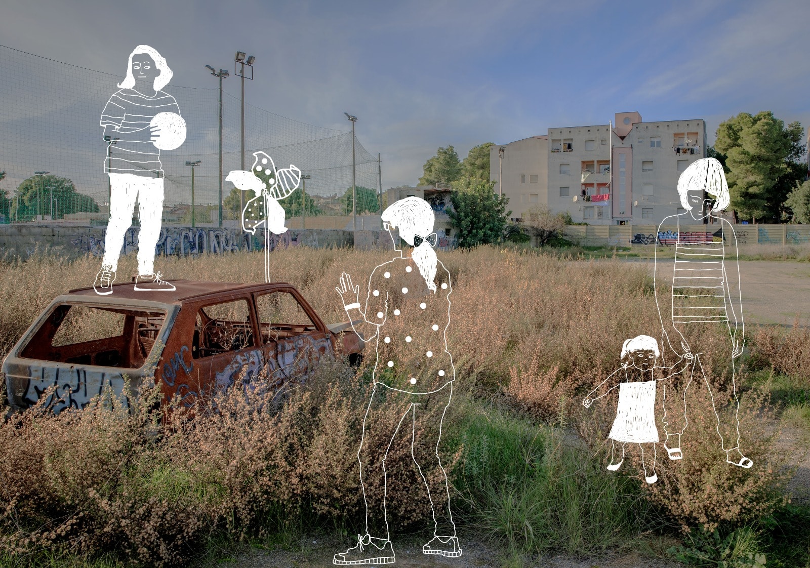 Le illustratrici Amalia Mora e Michela Nanut hanno invece lavorato su due immagini di Cagliari, realizzate dal fotografo Giovanni Diffidenti, animando paesaggi “abbandonati”. Michela Nanut con i suoi disegni accompagna le parole di Patrizia, una madre, e rappresentano un’infanzia che non ha diritto di essere tale, mentre Amalia Mora ritrae Ibtissam, un’adolescente originaria del Marocco che con la sua storia dimostra come il binomio povertà economica/povertà educativa si possa sfatare e sconfiggere. Ibtissam lo fa grazie al suo impegno e Amalia Mora la rappresenta come un arcobaleno di colori mentre legge, esce dall’acqua e si tuffa senza paura verso il futuro.