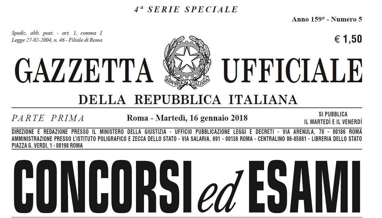 Sulla Gazzetta Ufficiale (la n. 5 del 16 gennaio 2018) sono stati pubblicati vari concorsi pubblici per diversi profili altamente specializzati.
