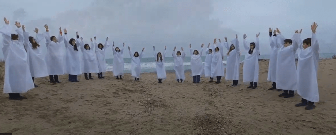 La coreografia del video che vede i ragazzi del coro in abito bianco, la base musicale della danza tradizionale ebraica “Ma Navu”, su musica di Yossi Spivak, appartiene al filone Yemenita, e si ispira al testo di un salmo biblico che inneggia alla pace ed alla speranza con le parole del profesta Isaia che nel cap 52 esalta la liberazione di Sion: “Quanto sono piacevoli, sui monti, i passi del messaggero di buone notizie che annunzia la liberazione che annunzia la pace” e poi ancora le immagini delle simboliche anime dalle vesti bianche sulla nuda sabbia, rendono il video particolarmente emozionante.