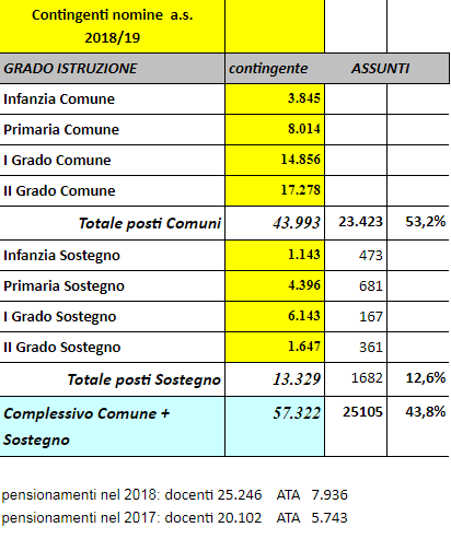 La situazione di docenti e Ata è critica: “Un’uscita consistente di personale docente e ATA potrebbe accentuare il fenomeno che si è manifestato con le assunzioni di quest’anno, con le quali si è riusciti solo a coprire meno della metà dei posti vacanti e disponibili. Spia di una situazione cui va posto rimedio con interventi opportuni sul versante della formazione e del reclutamento del personale”.