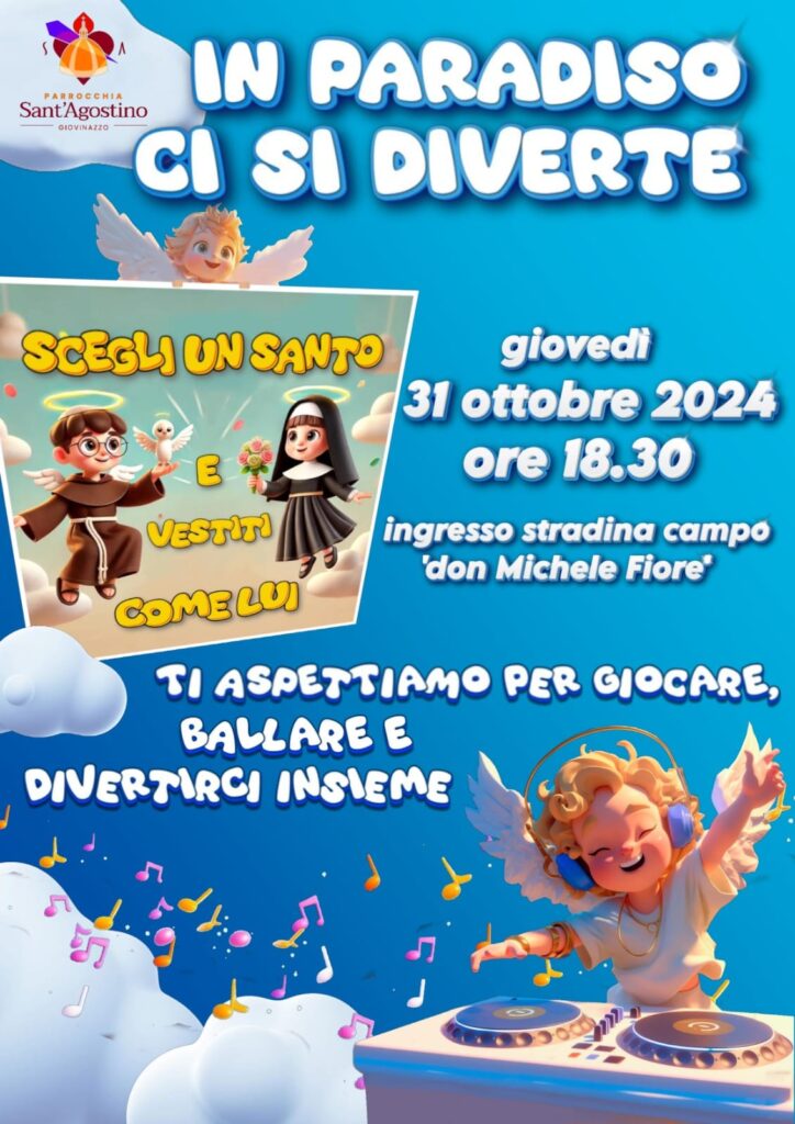 Come riporta Repubblica, è proprio in risposta alla crescente popolarità di Halloween che una parrocchia a Giovinazzo (Bari) ha ideato una festa alternativa, ribattezzata “Festa della luce.” L’evento, che si terrà il 31 ottobre, mira a riscoprire le radici spirituali della festività, offrendo un momento di gioia in un contesto che mette al centro i valori cristiani. Sulla locandina dell’evento campeggia la scritta “In paradiso ci si diverte”, accompagnata da allegre illustrazioni di bambini vestiti da santi, come San Francesco e Santa Rita.