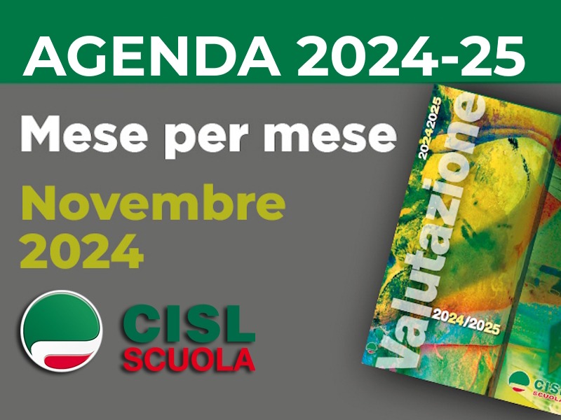 Ogni anno scolastico la CISL Scuola fa omaggio alle proprie iscritte e ai propri iscritti di un’Agenda che contiene, oltre agli spazi dedicati all’annotazione degli impegni giornalieri e a una loro ottimale organizzazione, un vademecum dove sono riportati in modo essenziale diritti e doveri previsti dal contratto di lavoro (retribuzione, assenze, libertà sindacali, previdenza, ecc.), insieme ad altre norme di carattere generale sul sistema di istruzione e formazione e sull’organizzazione del servizio scolastico.