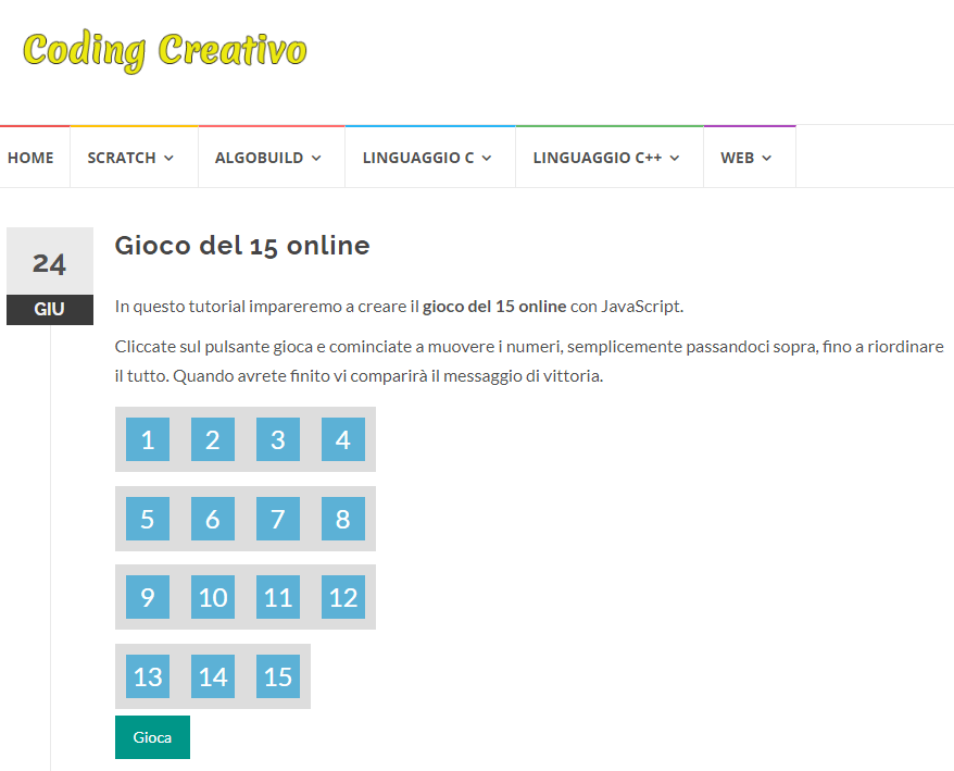 La sezione riguardante scratch parte da livelli di difficoltà base (scuola elementare) fino ad arrivare al biennio delle superiori.
