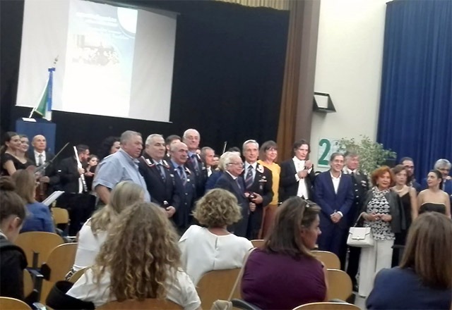 Nel corso della cerimonia, iniziata con l’esecuzione dell’Inno d’Italia, si sono intrecciati ai brani musicali gli interventi del coro guidati dai docenti di canto.
