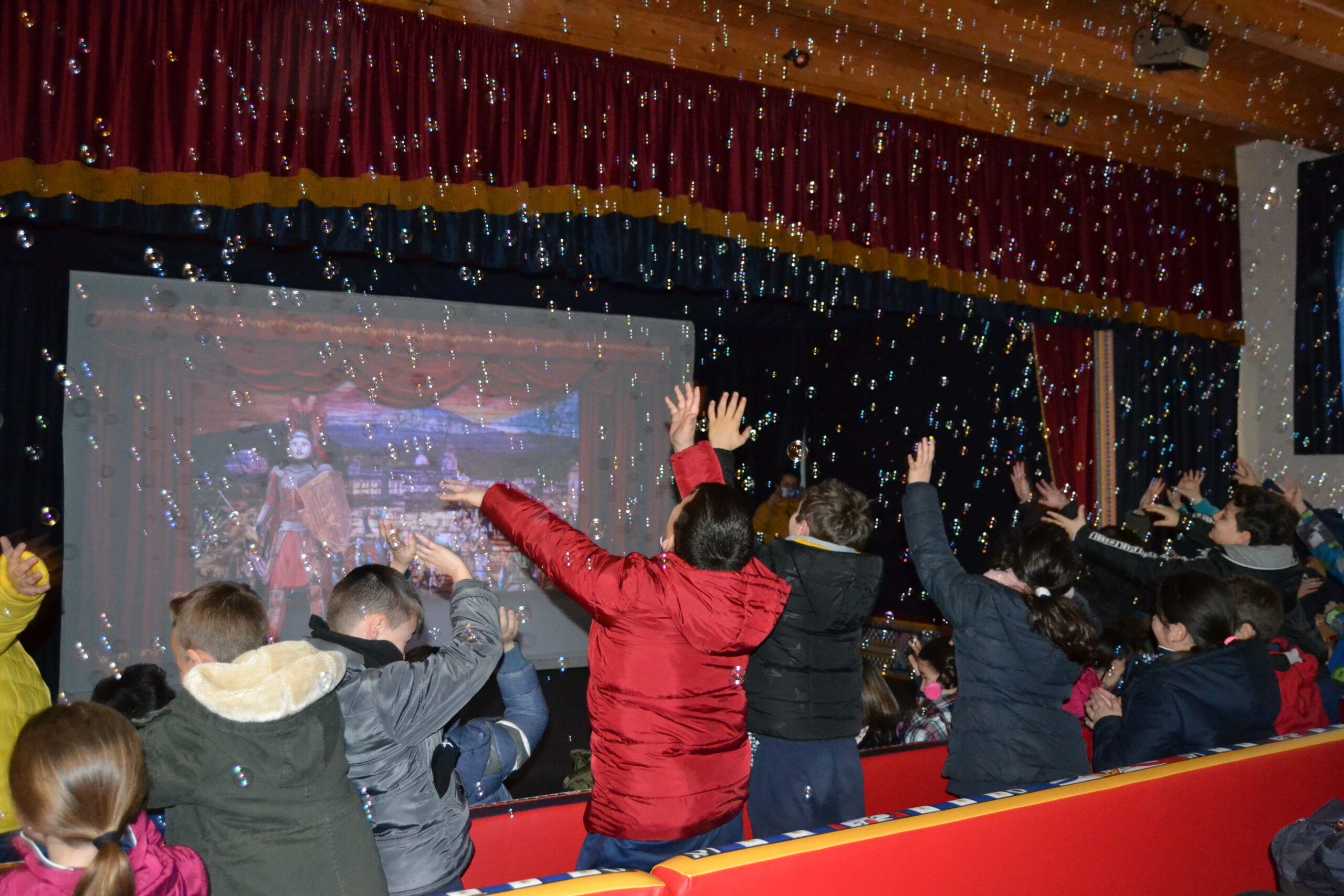 Lo spettacolo prevede la proiezione di un documentario sulle epoche storiche principali realizzato in collaborazione con il Ministero dei Beni Culturali reso coinvolgente grazie all’innovativo sistema di interazione con il pubblico (Interactive Live Motion).