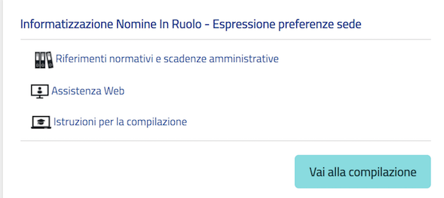 Incomincia già in queste ore, per alcune province, la compilazione della domanda dell’Informatizzazione delle nomine in ruolo per le preferenze della sede. Entro la prossima settimana tutti gli aspiranti al ruolo potranno compilare questa importantissima domanda che assegnerà loro la sede di titolarità.