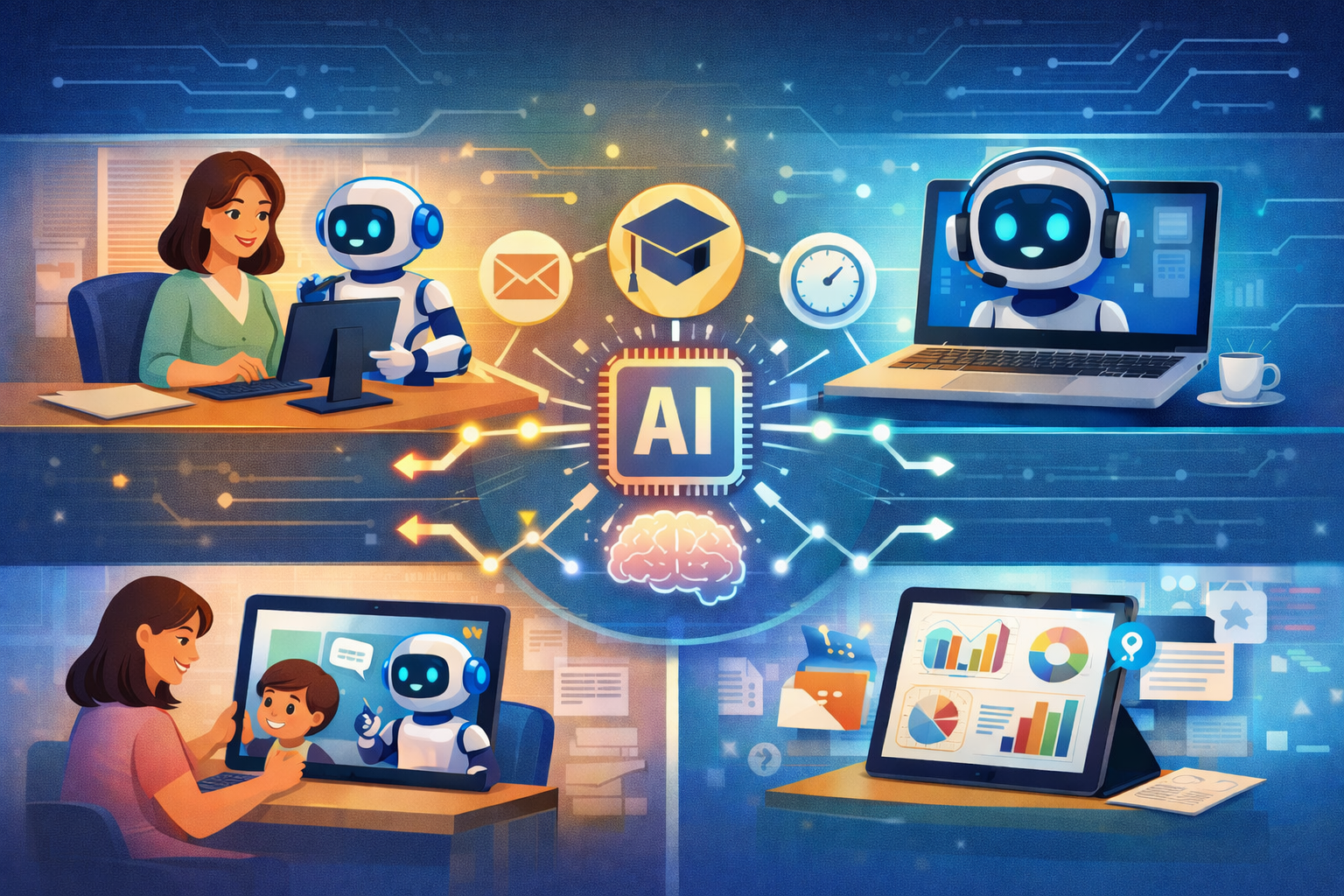 La “Segreteria Intelligente” della Scuola che opera con l’ausilio dell’AI impone una revisione del mansionario e del Piano delle Attività del personale ATA. L’AI interviene su tre direttrici funzionali: