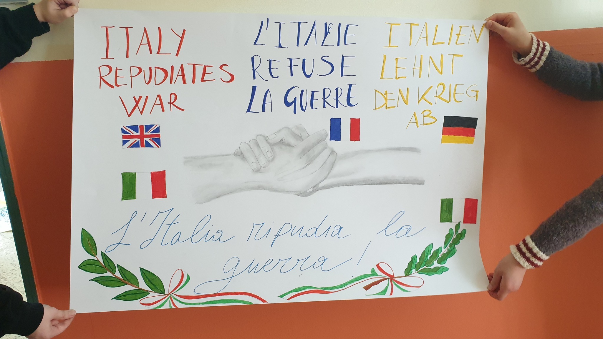 Tantissime scuole di tutta Italia ci hanno mandato i lavori delle proprie classi. Cartelloni e grafiche colorate per simboleggiare la pace uniti dall’hashtag #italiaripudialaguerra.