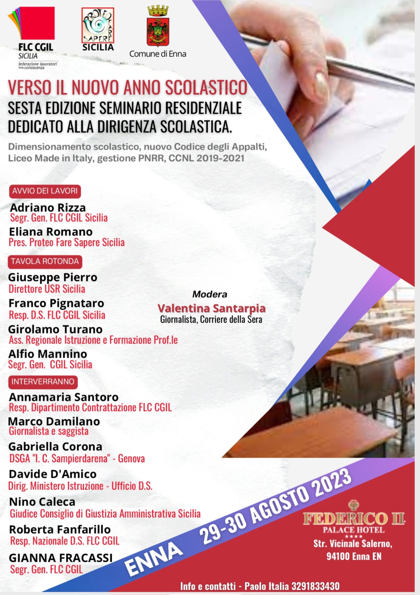 Verso il nuovo anno scolastico. È questo il tema del seminario della Flc Cgil Sicilia che si terrà il 29 e 30 agosto presso l’Hotel Federico II di Enna.