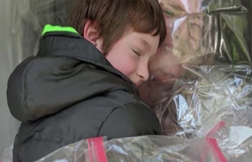 Come riporta La Repubblica, Kelsey Pavelka, maestra di seconda elementare, ha fatto escogitato l’abbraccio “sicuro” tutto da sola usando un telo della doccia, del nastro adesivo e delle borse di plastica resistente. Dall’altro lato, ogni alunno, ha sanificato il lato esterno della ‘barriera’ dopo aver ricevuto l’abbraccio della propria insegnante.