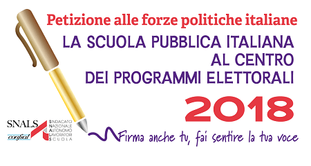 Con questa petizione lo Snals impegna i partiti a indicare chiaramente nei propri programmi elettorali misure e risorse per la scuola. Il sindacato fornirà una costante informazione sulle risposte, invitando a votare chi si impegnerà più chiaramente. Saranno i cittadini, negli anni seguenti, a decidere nel segreto dell’urna se i politici eletti e i loro partiti abbiano onorato o no la promessa.