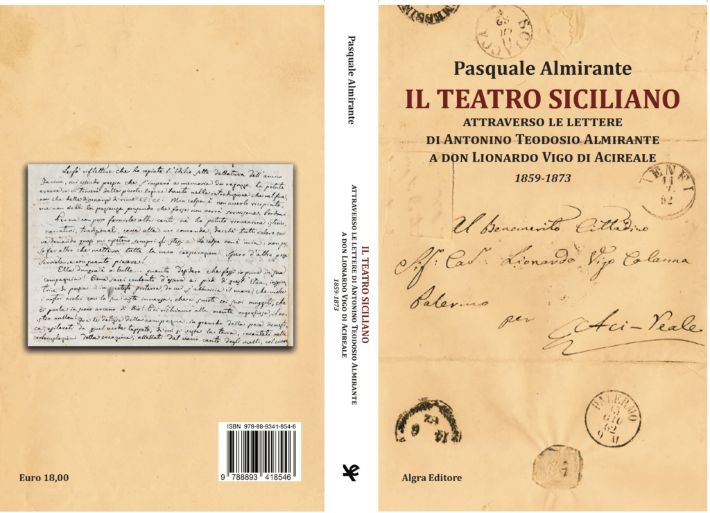 Esce per l’editore Algra, l’ultima fatica letteraria del nostro Pasquale Almirante, storico collaboratore di questo portale, dal titolo: “Il teatro siciliano attraverso le lettere di Antonio Teodosio Almirante a don Lionardo Vigo di Acireale. 1859-1873”, 18 €.
